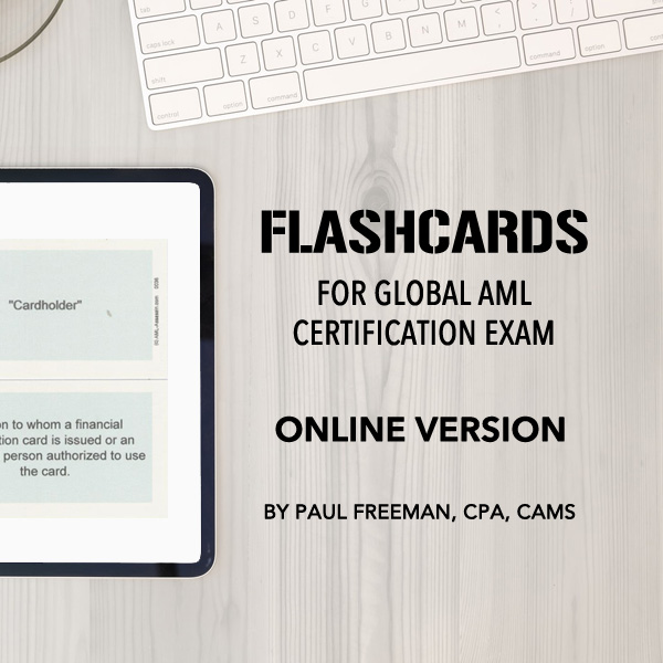 This item is the combination of the “Practice Test for Global AML Certification Exams – Web-Based Version” and the “Flashcards – Web-Based Version”.